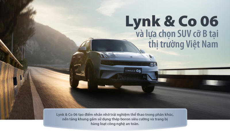 Trong bối cảnh đó, Lynk & Co 06 được hãng định hướng với mục tiêu “phổ cập hóa an toàn cao cấp”, thông qua nền tảng khung gầm tiêu chuẩn châu Âu cùng nhiều công nghệ hỗ trợ lái hiện đại. Đây cũng là mẫu xe nhỏ nhất của Lynk & Co tại thị trường Việt Nam, nhưng được kỳ vọng sẽ tạo dấu ấn riêng trong phân khúc SUV cỡ B đang cạnh tranh ngày càng sôi động.